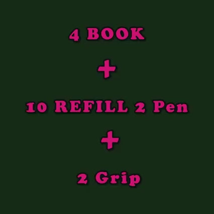 Answer 1: The package includes 1 pen, 1 grip, 4 books, and 10 refills, providing all the essentials for practice right out of the box.